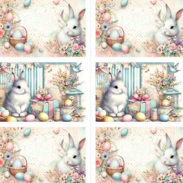 Descrição Tecido Tricoline Digital Páscoa Painel Jogo Americano Coelhos