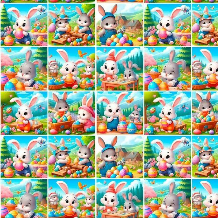 Descrição Tecido Tricoline Digital Páscoa Quadrados Coelhos