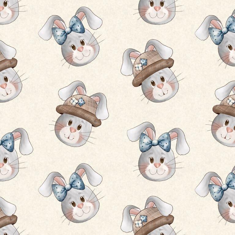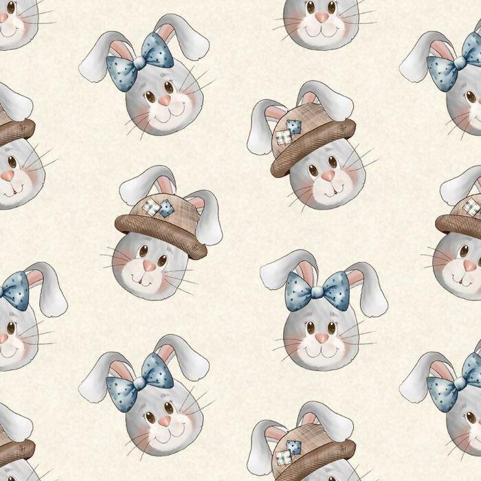 Tecido Tricoline Digital Páscoa Rosto de Coelhos