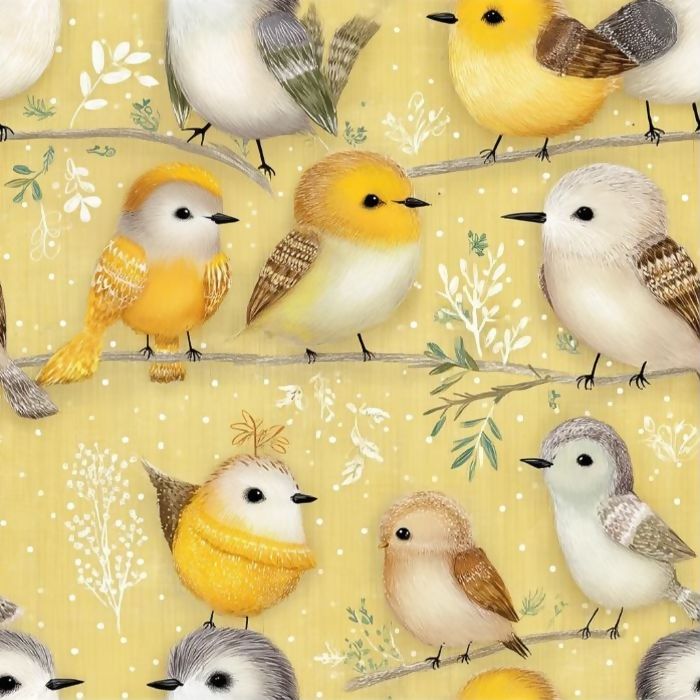Descrição Tecido Tricoline Digital Passarinhos Amarelindo