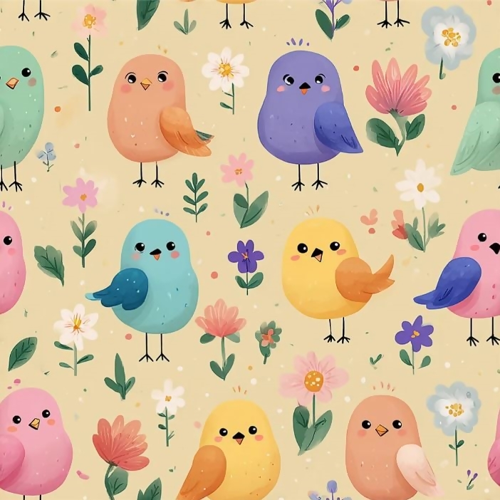 Descrição Tecido Tricoline Digital Passarinhos Colors