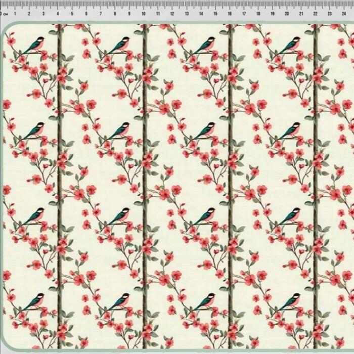 Descrição Tecido Tricoline Digital Pássaros e Flores