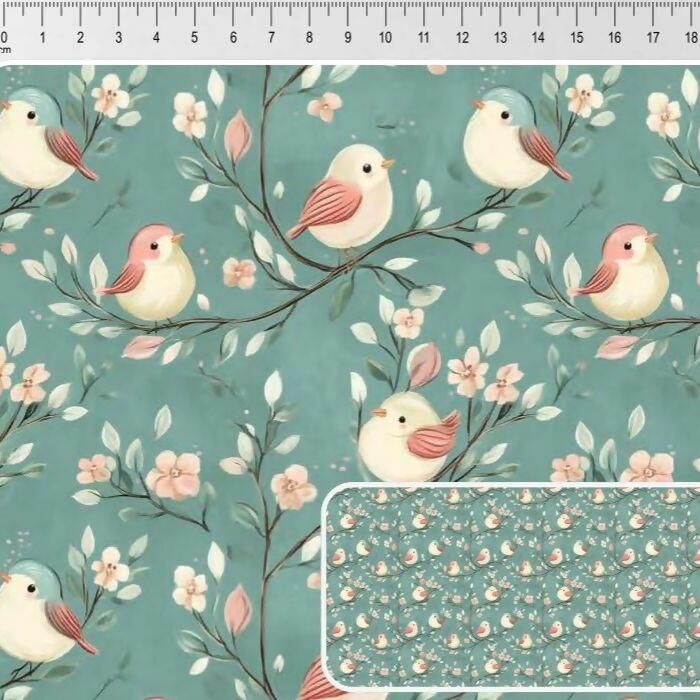 Descrição Tecido Tricoline Digital Pássaros Fundo Verde