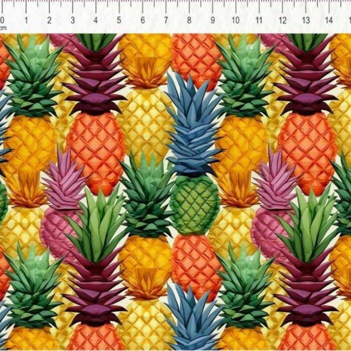 Descrição Tecido Tricoline Digital Patch Abacaxis