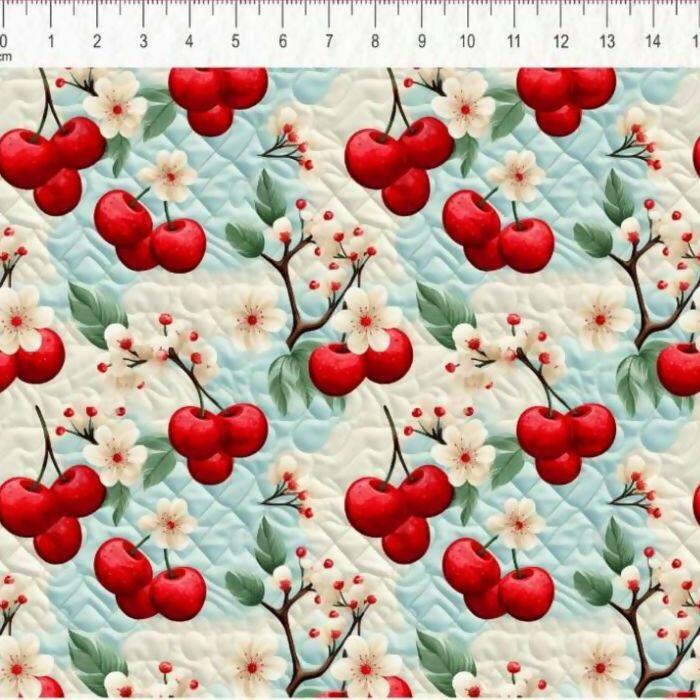 Descrição Tecido Tricoline Digital Patch Cerejas