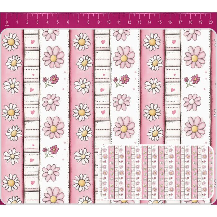 Tecido Tricoline Digital Patch Listrado Floral