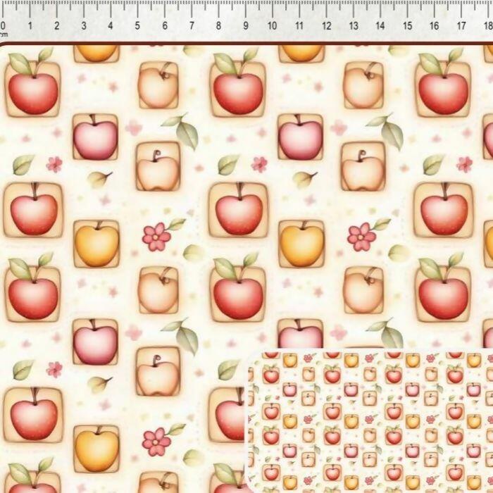 Descrição Tecido Tricoline Digital Patch Maçãs