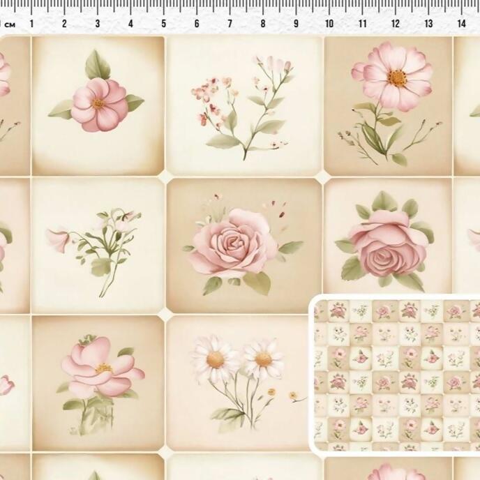 Tecido Tricoline Digital Patch Rosas
