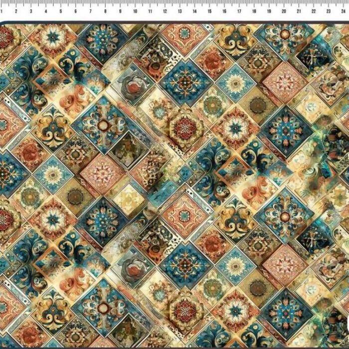 Descrição Tecido Tricoline Digital Patchwork Cashmere