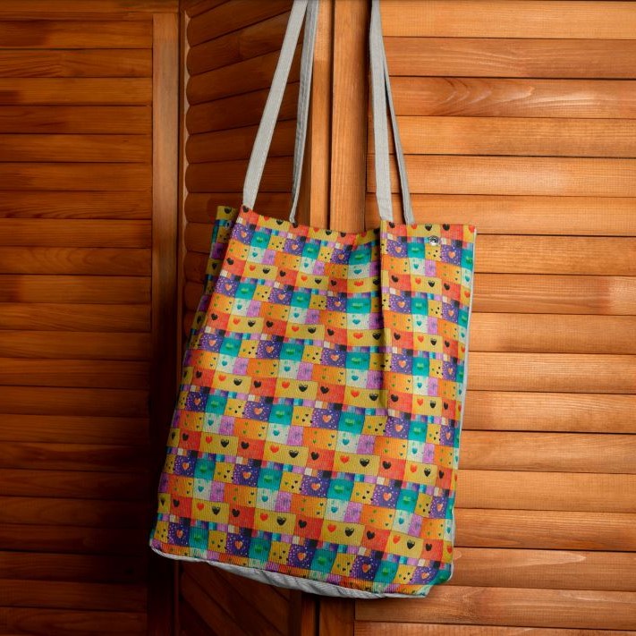 Descrição Tecido Tricoline Digital Patchwork Colorido Coração