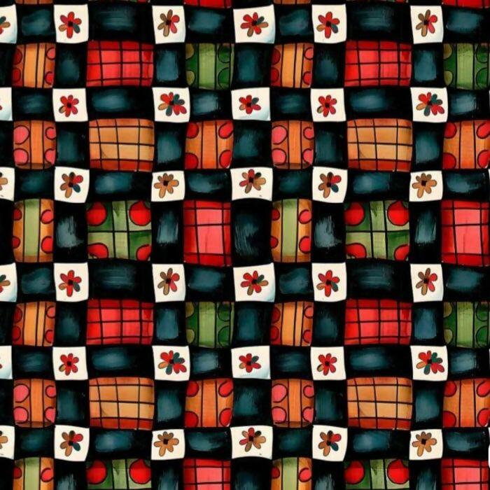 Tecido Tricoline Digital Patchwork Fundo Preto
