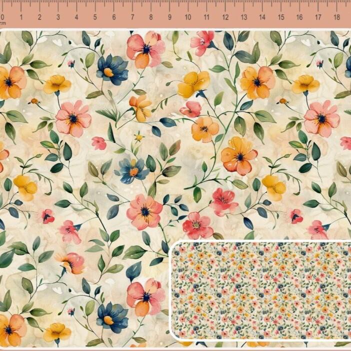 Descrição Tecido Tricoline Digital Peach Flores e Ramos