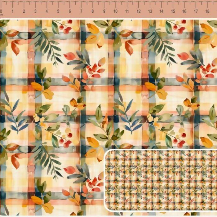 Descrição Tecido Tricoline Digital Peach Square Colorido