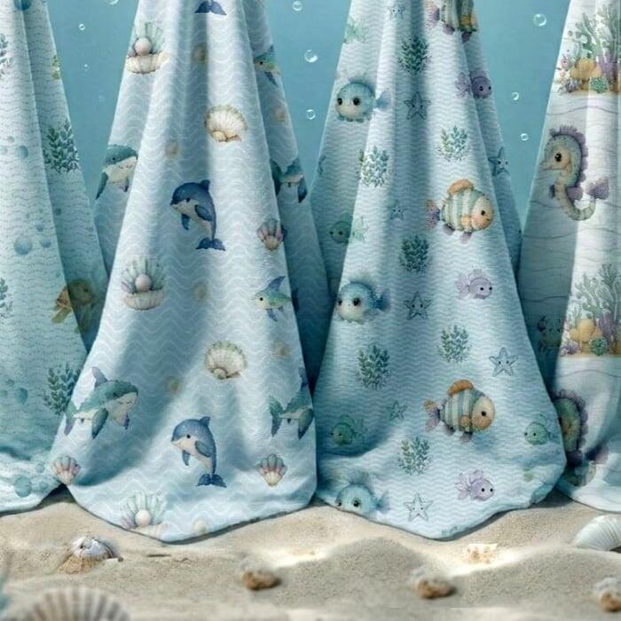 Descrição Tecido Tricoline Digital Peixes Fundo Azul