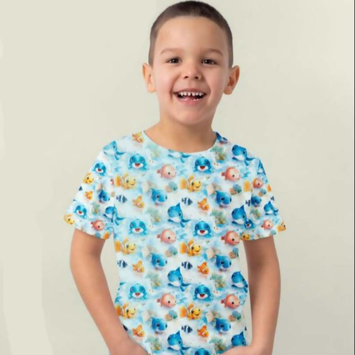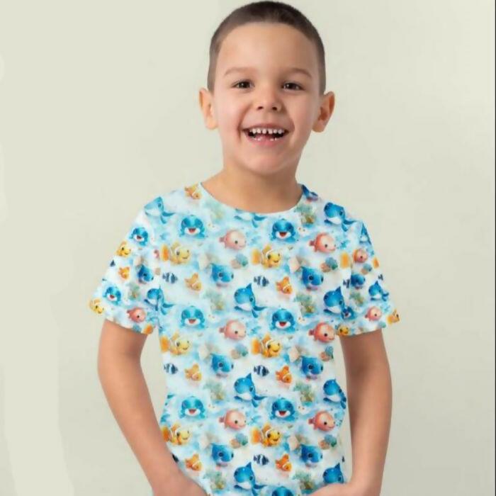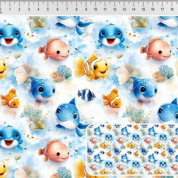 Descrição Tecido Tricoline Digital Peixinho Oceano