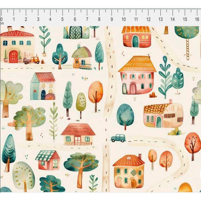 Tecido Tricoline Digital Pela Cidade Ruas