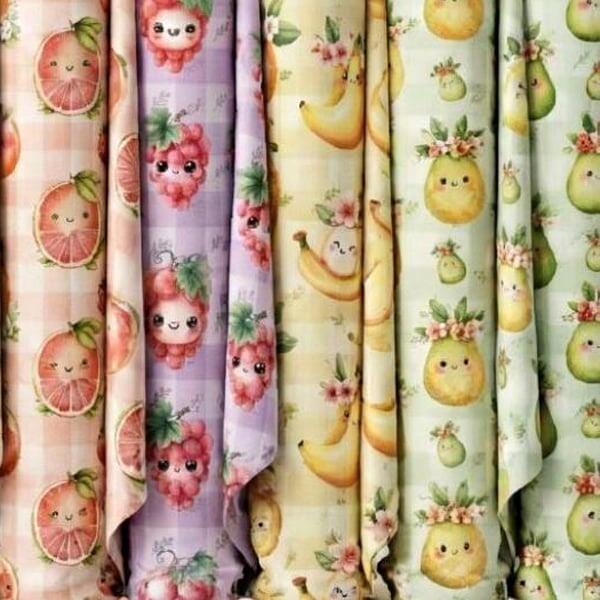 Tecido Tricoline Digital Pêras Fundo Xadrez