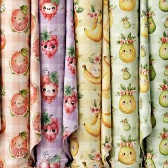 Descrição Tecido Tricoline Digital Pêras Fundo Xadrez