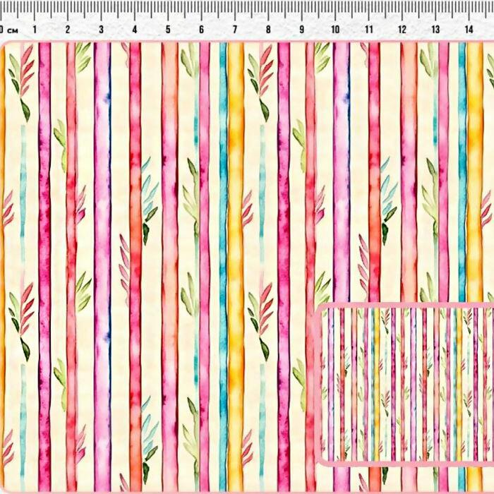 Descrição Tecido Tricoline Digital Pétalas Poesia Listrado