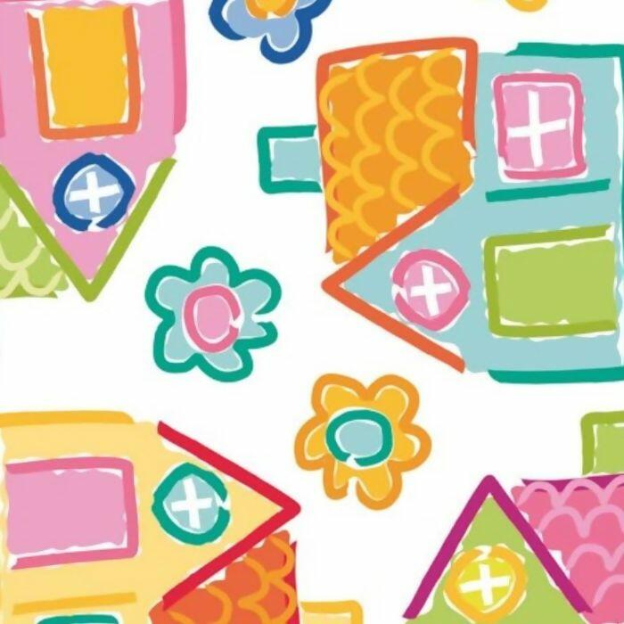 Descrição Tecido Tricoline Digital Pintando Casinhas