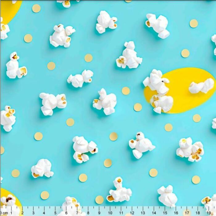 Tecido Tricoline Digital Pipoca Fundo Azul
