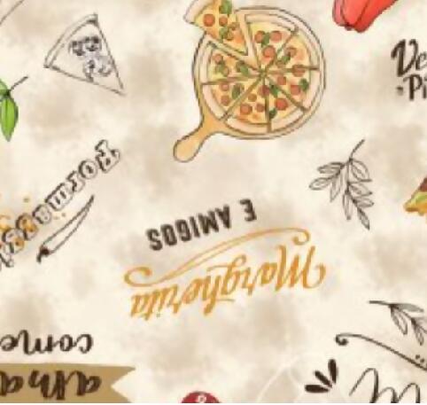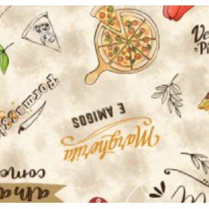 Descrição Tecido Tricoline Digital Pizza Fundo Bege