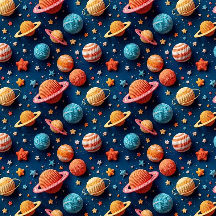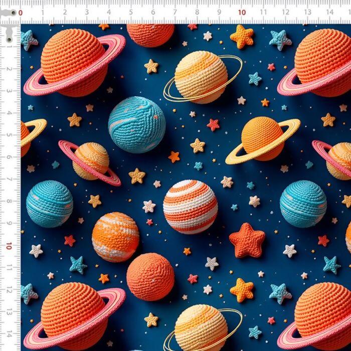Tecido Tricoline Digital Planetas Fundo Azul