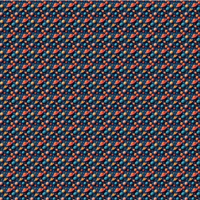 Descrição Tecido Tricoline Digital Planetas Fundo Azul