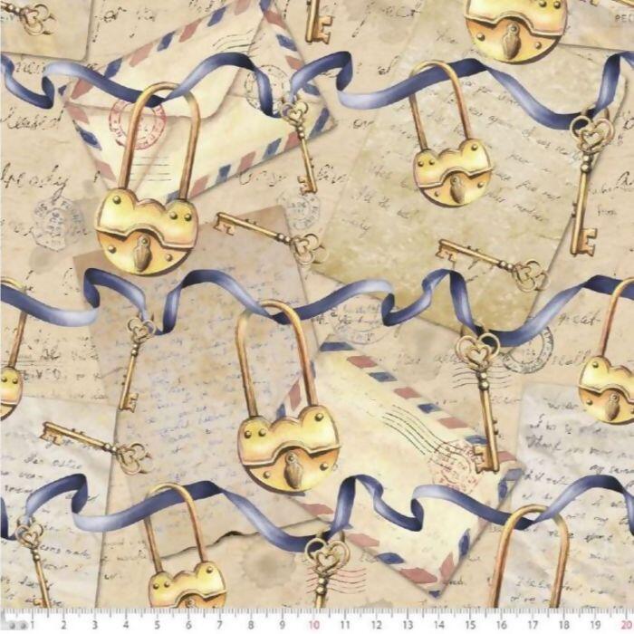 Descrição Tecido Tricoline Digital Poesia e Cadeados