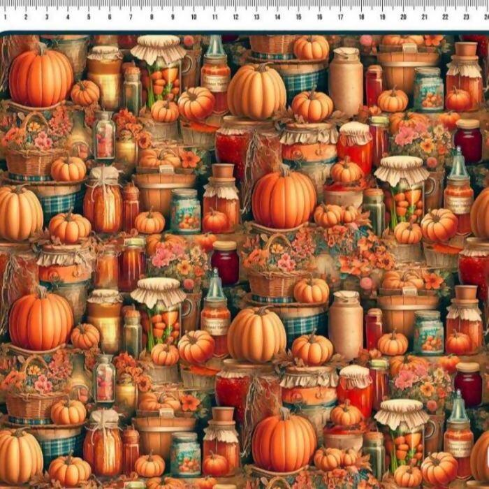 Descrição Tecido Tricoline Digital Potes e Abóboras