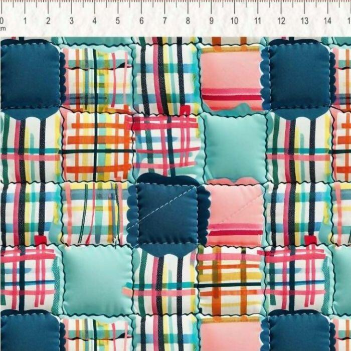 Descrição Tecido Tricoline Digital Primavera Quadrados