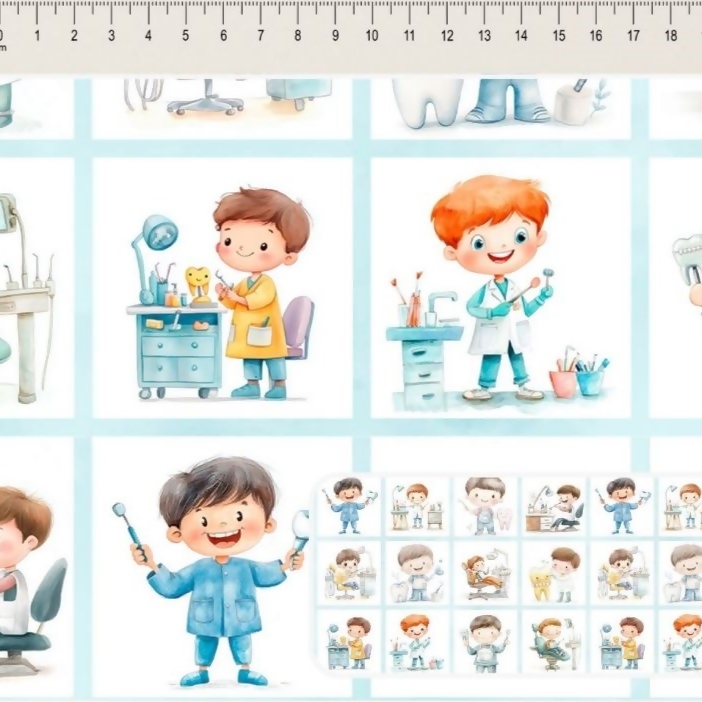Descrição Tecido Tricoline Digital Profissões Quadros Dentista