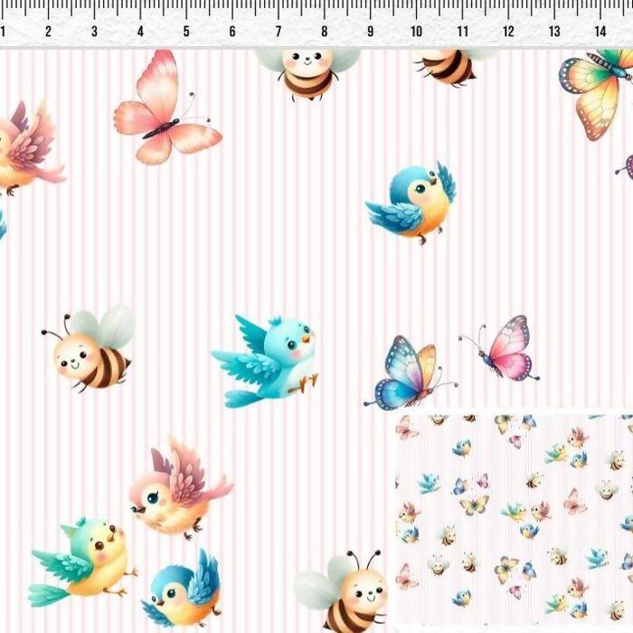 Tecido Tricoline Digital Provence borboletas e Passarinhos