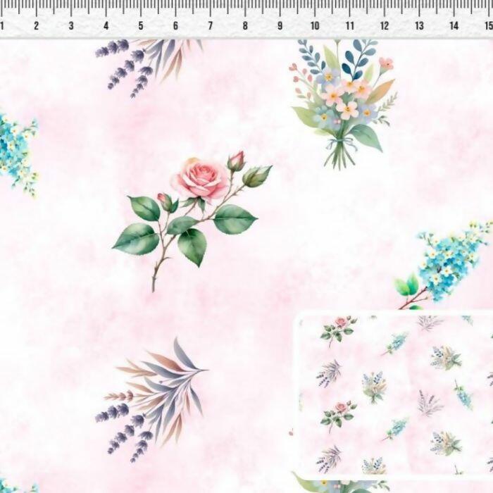 Descrição Tecido Tricoline Digital Provence Floral Espaçado