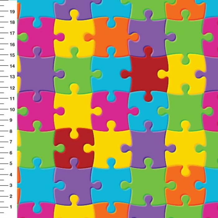 Descrição Tecido Tricoline Digital Quebra Cabeça Peças Coloridas