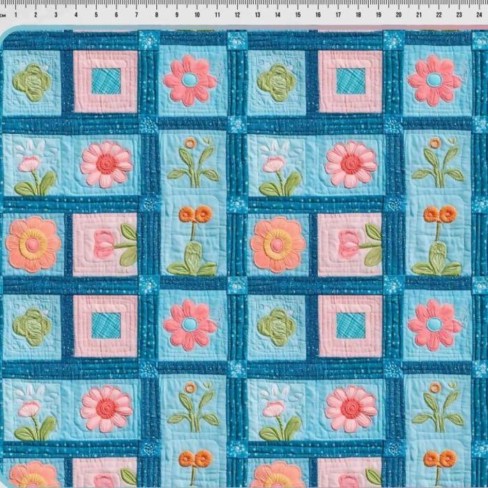 Tecido Tricoline Digital Quilted Garden Patchwork