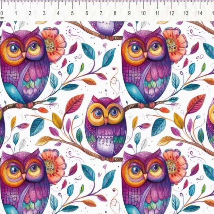 Descrição Tecido Tricoline Digital Radiance Corujas