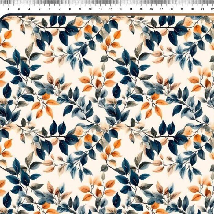 Descrição Tecido Tricoline Digital Ramos Tons Azuis