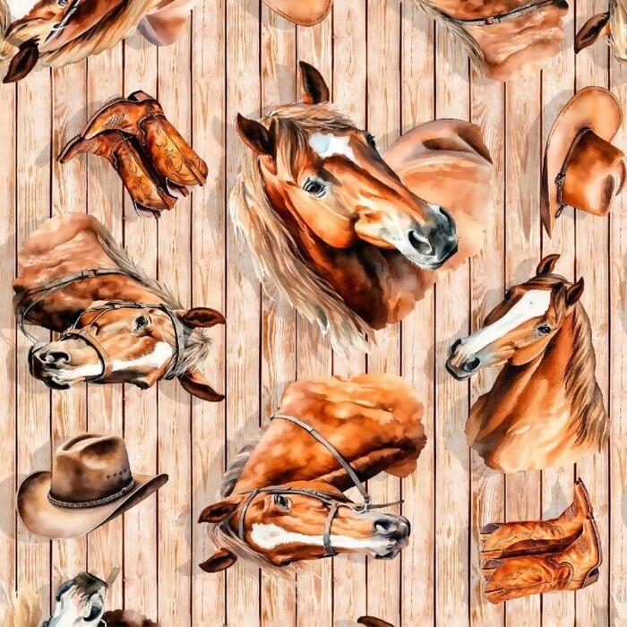 Descrição Tecido Tricoline Digital Rancho Cavalos