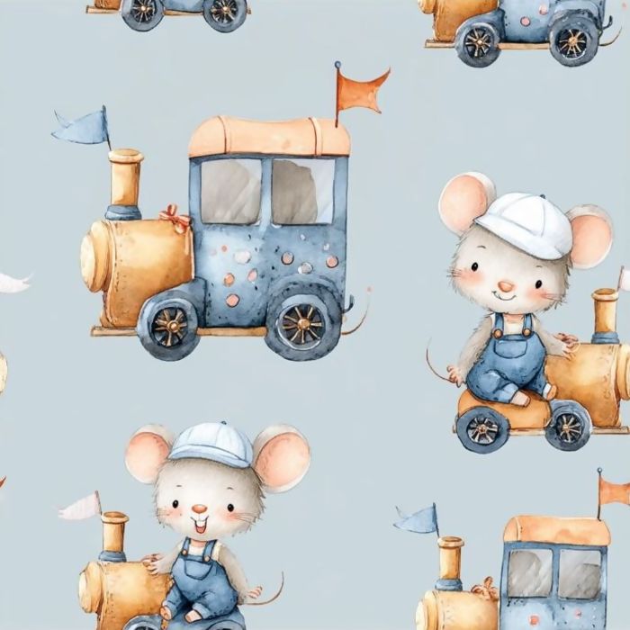 Descrição Tecido Tricoline Digital Ratinho no Trem