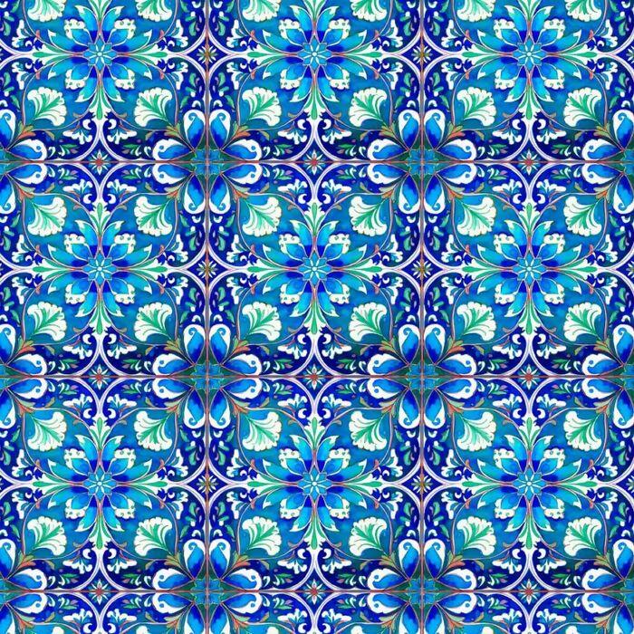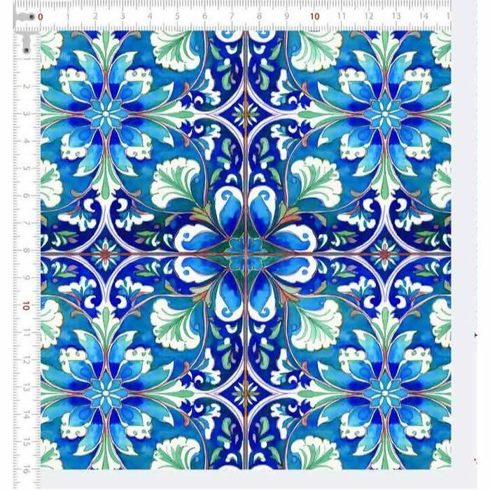 Tecido Tricoline Digital Reativa Cerâmica Azul e Verde