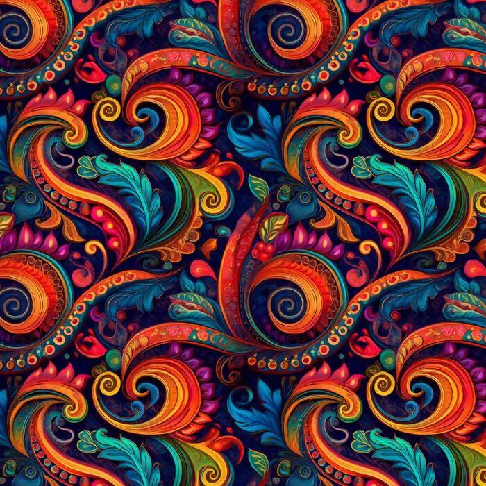 Descrição Tecido Tricoline Digital Reativa Colorido Fundo Azul