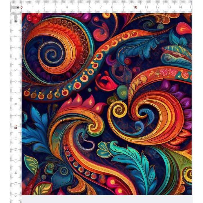 Tecido Tricoline Digital Reativa Colorido Fundo Azul