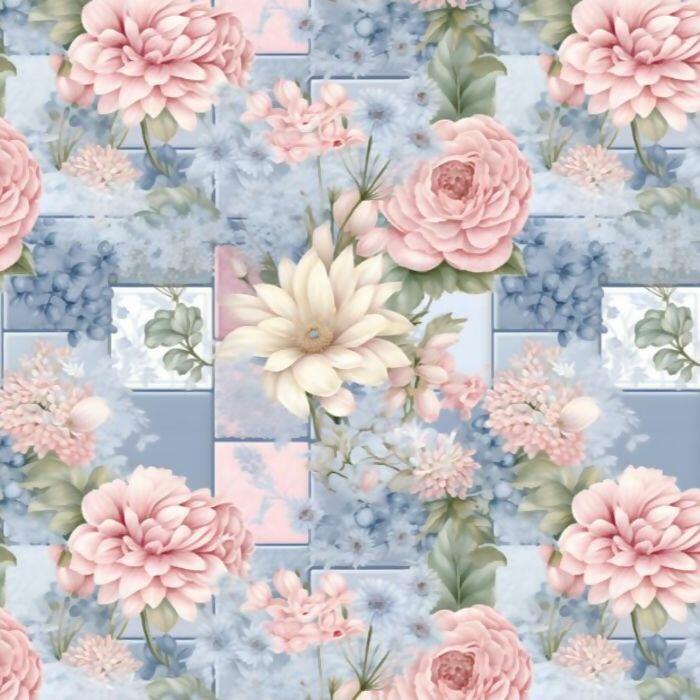Descrição Tecido Tricoline Digital Romance Floral Azul Claro