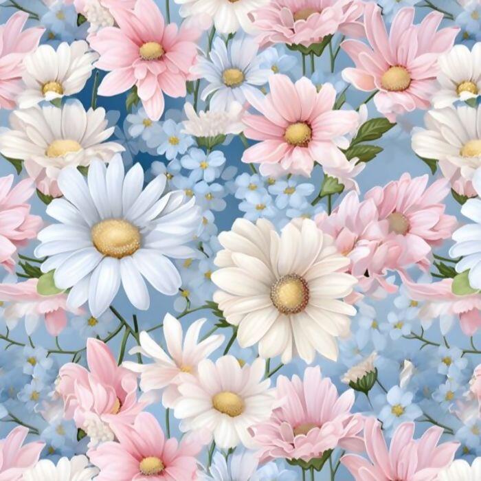 Tecido Tricoline Digital Romance Floral Azul