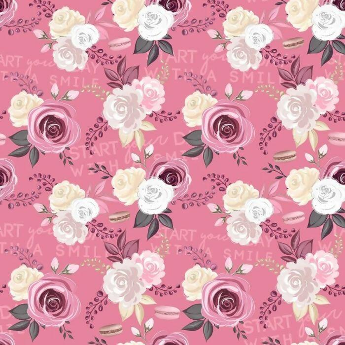 Descrição Tecido Tricoline Digital Rosas Fundo Pink