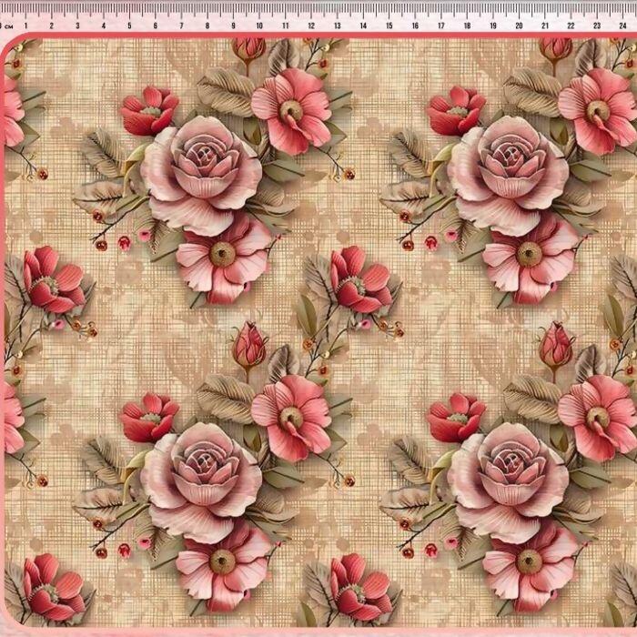 Descrição Tecido Tricoline Digital Rosas Grandes Textura Bege