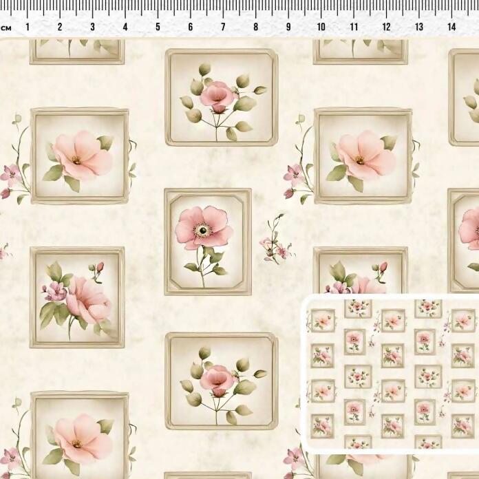 Descrição Tecido Tricoline Digital Rosas na Moldura