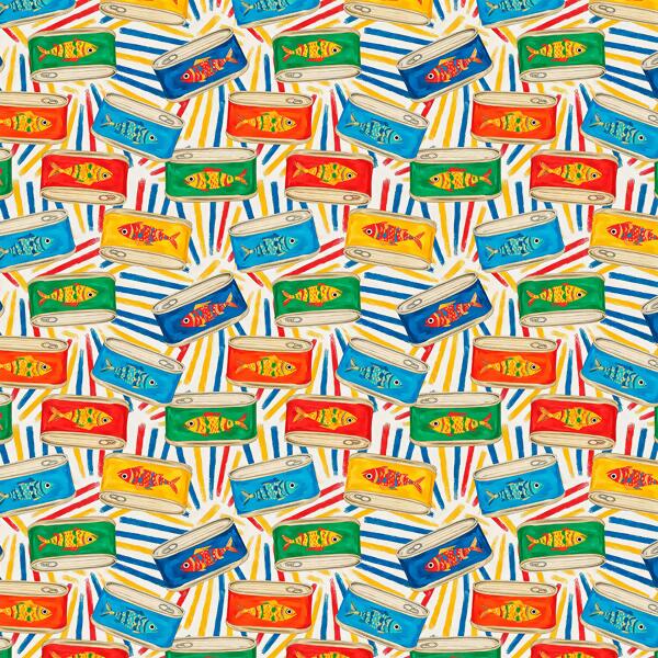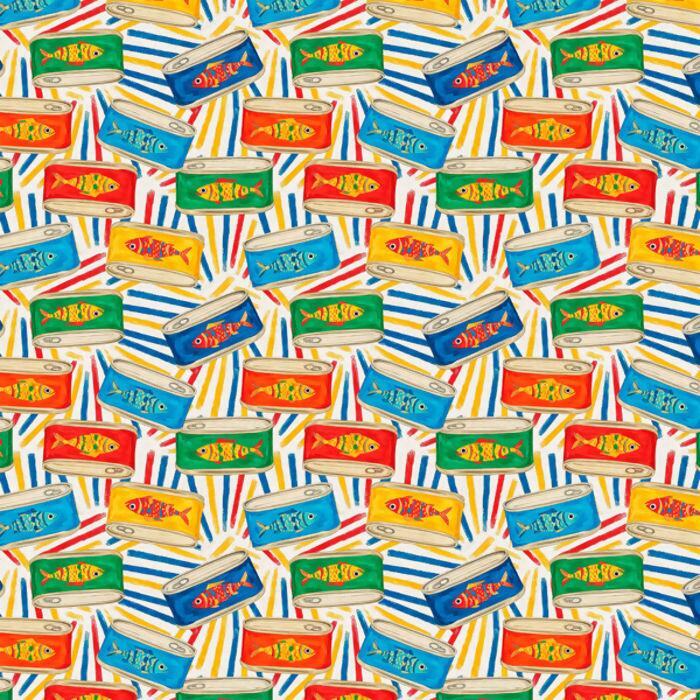 Tecido Tricoline Digital Sabores Latas de Sardinha