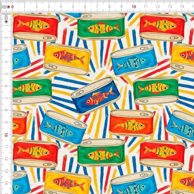 Descrição Tecido Tricoline Digital Sabores Latas de Sardinha